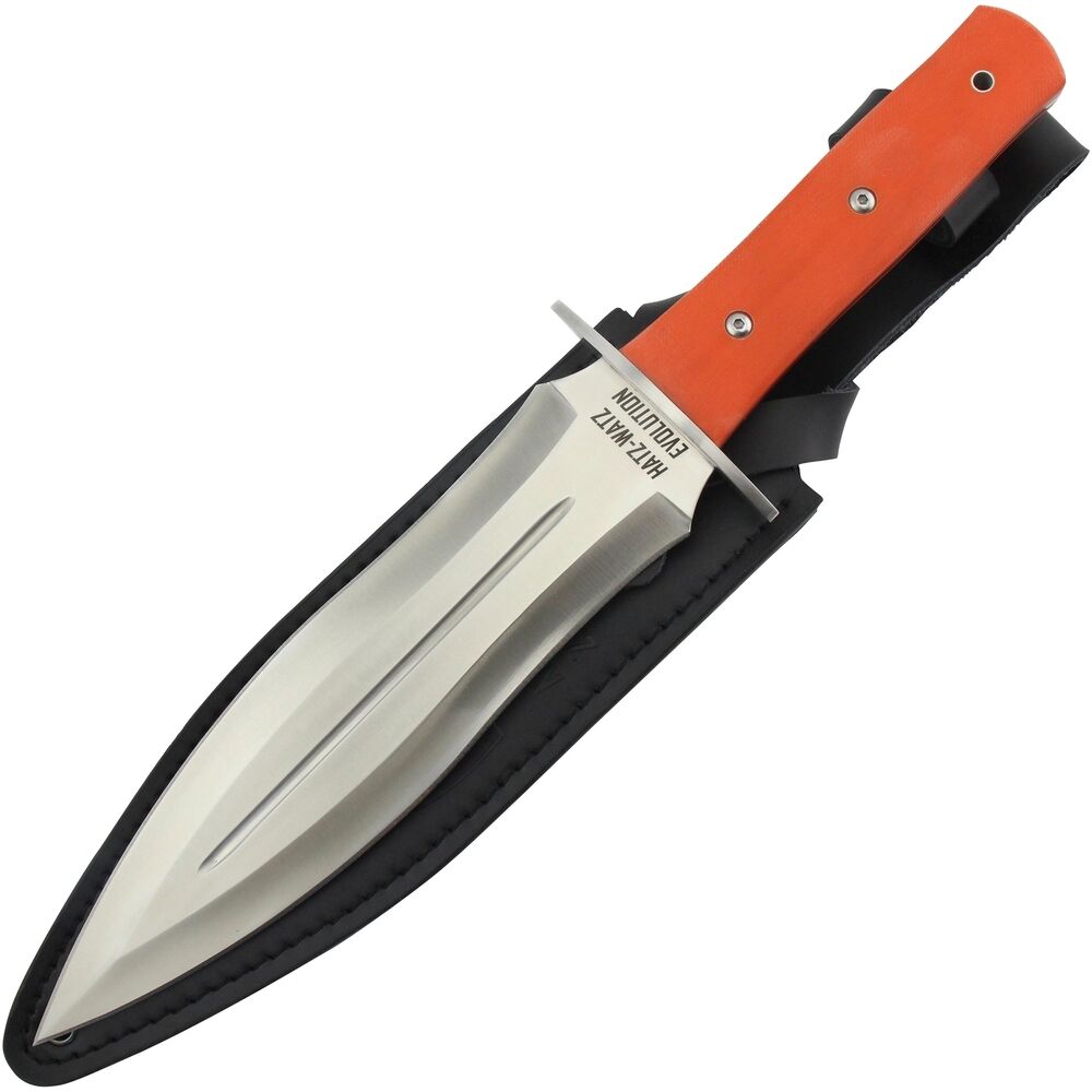 Das signalorangene Griffstück aus G10 lässt das Messer jederzeit leicht wieder auffinden und ist mit einer Fangriemenöse ausgestattet. Gesichert wird es mit zwei festen Nieten. Der glasfaserverstärkte Kunststoff G10 ist besonders robust und sehr leicht zu reinigen.