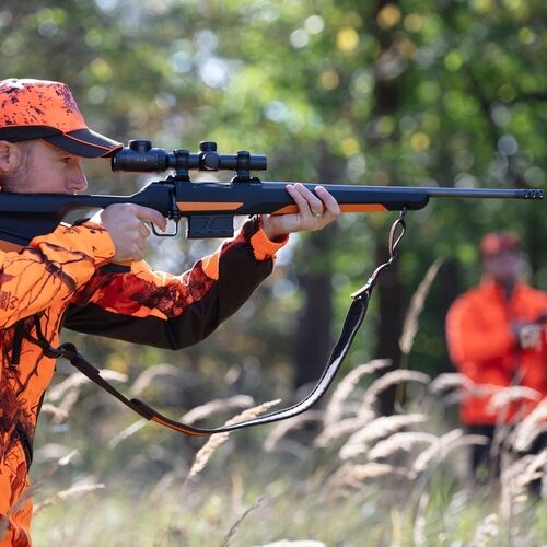 Die CZ 600+ ERGO DRIVEN HUNT Repetierbüchse verfügt über einen austauschbaren Lauf, der einen einfachen Kaliberwechsel ermöglicht, um sich an verschiedene Jagdbedingungen anzupassen. Der ergonomische Daumenlochschaft aus robustem Polymer ist mit weichem TPU-Material und orangefarbenen Gummieinlagen ausgestattet, die für Sicherheit und Komfort sorgen.