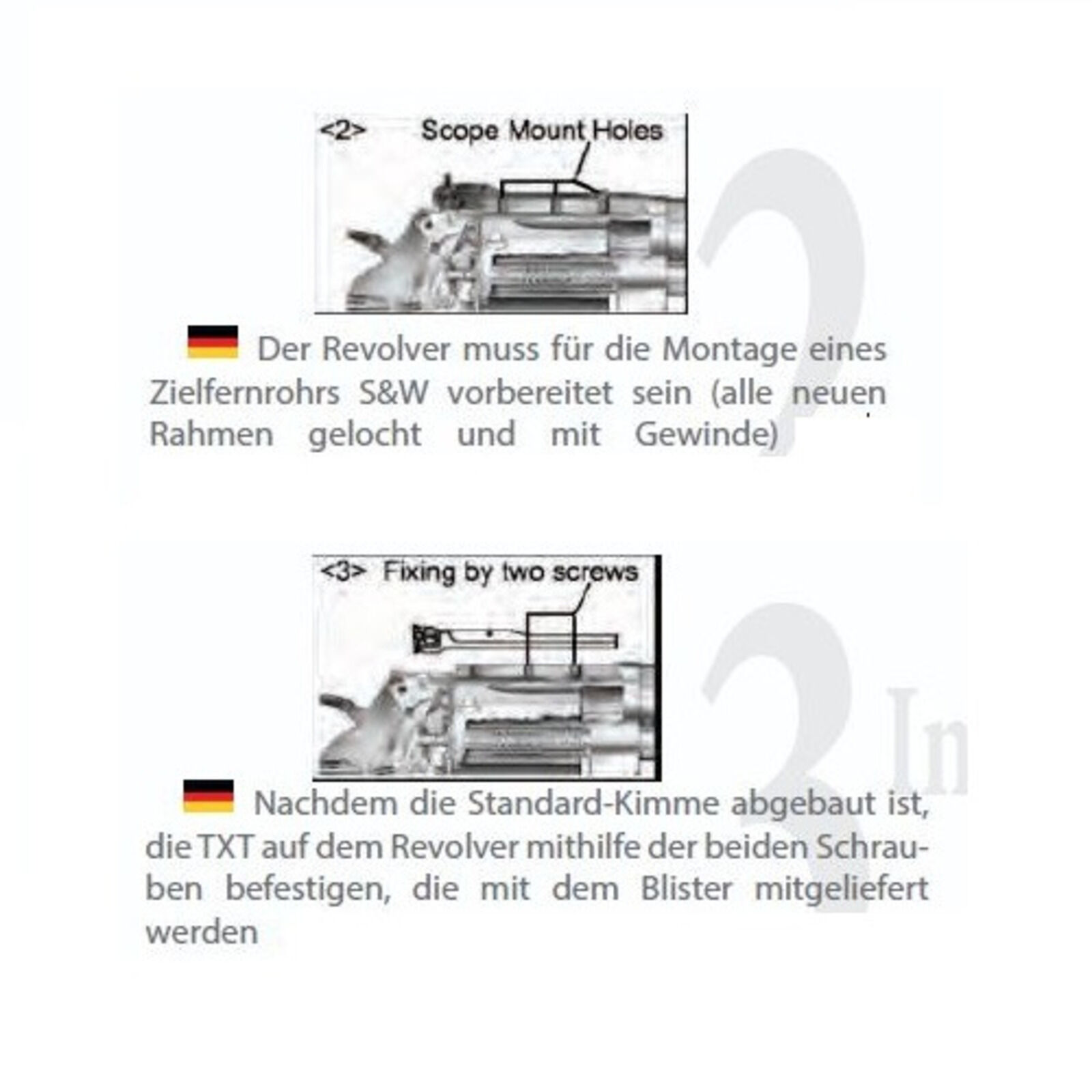 Smith & Wesson Revolver Modell K/L-Rahmen aktuelle Fertigung mit Visierkorn verstiftet, TXT Viserset Finish schwarz Fiber grün mit Visierkorn rot, Höhe und Seite verstellbar, mit 2/zwei Befestingsschrauben und 1/einem Verstellschlüssel, Code TXT02-F1 LPA Italien. Eine fachgerechte Montage wird empfohlen - Nacharbeiten beim Visierkorn sind erforderlich - Preis gültig für 1/ein Visierset Code TXT02-F1!