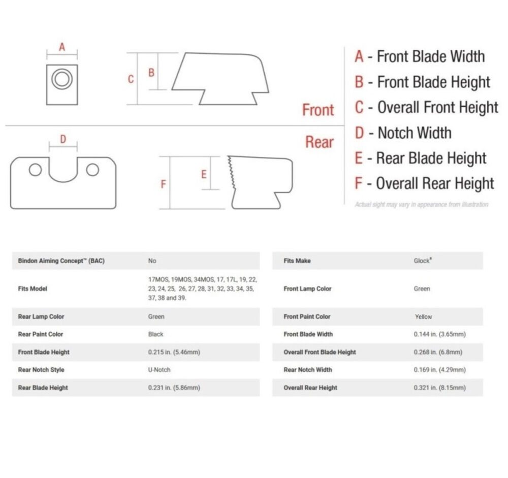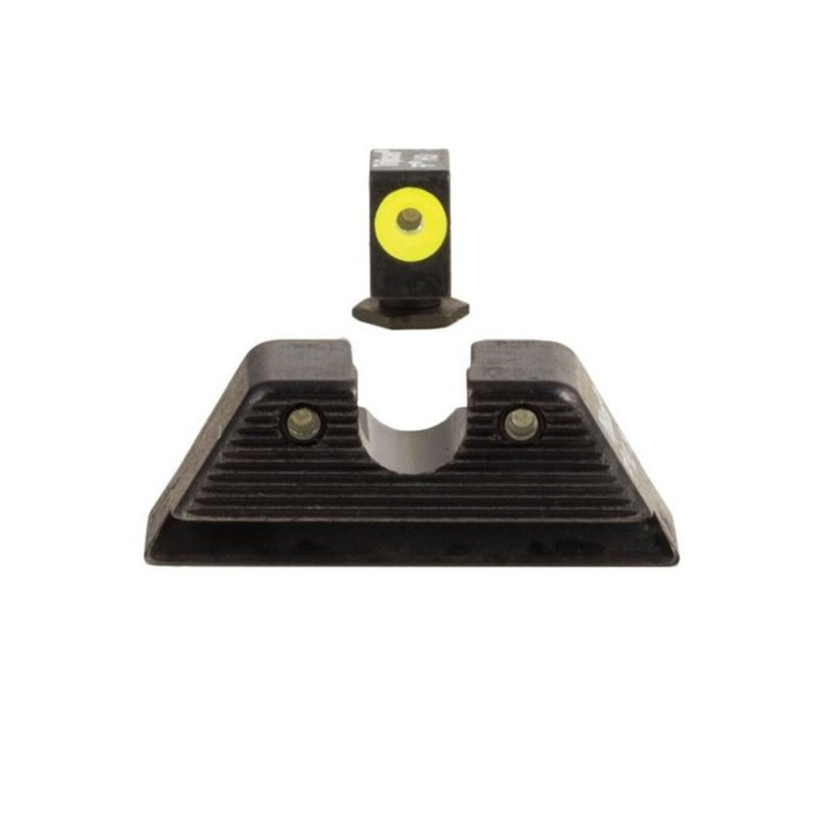 Pistole Glock Standard Frame/Griffstück Modell 17MOS, 19MOS, 34MOS, 17, 17L, 19, 22, 23, 24, 25, 26, 27, 28, 31, 32, 33, 34, 35, 37, 38 und/oder 39, HD Hard Duty Nacht Visierset grün mit Visierkorn grün selbstleuchtend, Visierkorn mit Dot gelb umrandet Daylight, Visierblatt geriffelt mit breitem U-Shaped Notch schwarz, Code GL114-C-601088 Trijicon USA. Nacharbeiten sind eventuell erforderlich - eine fachgerechte Montage wird empfohlen!