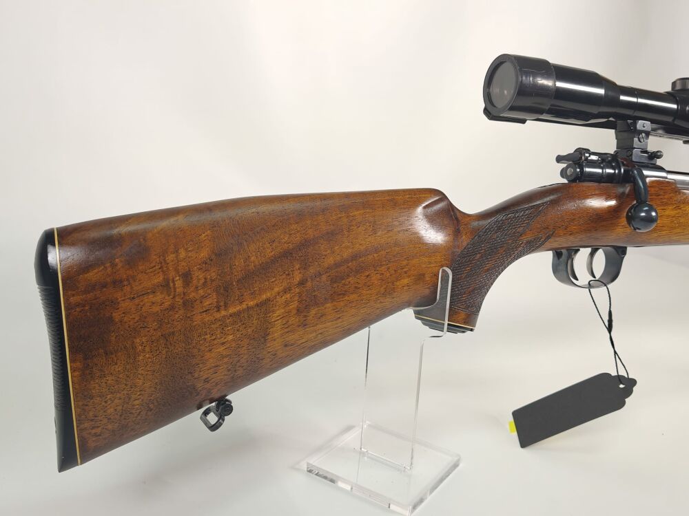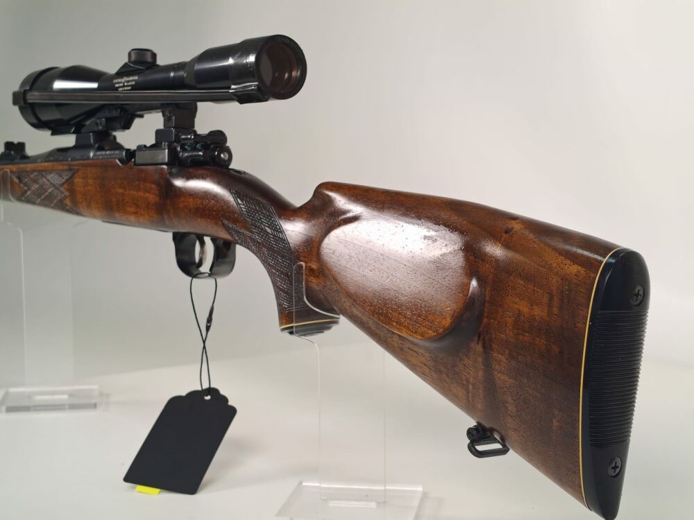 Der deutsche Stecher ermöglicht eine feine Schussabgabe, während das feste Magazin eine robuste und zuverlässige Handhabung bietet. Insgesamt handelt es sich um eine solide Jagdbüchse in einem bewährten Universalkaliber, ideal für den klassischen jagdlichen Einsatz.