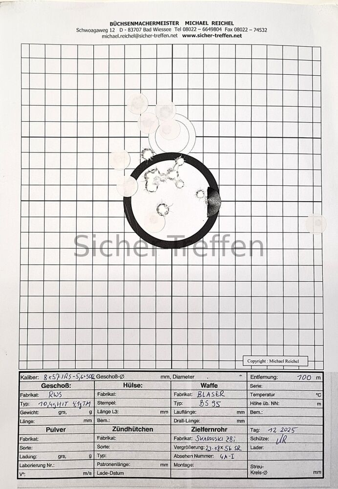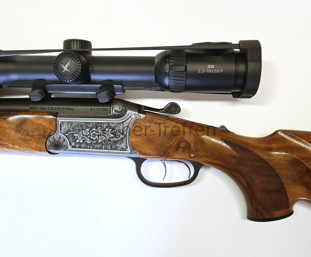 Im Kundenauftrag zu verkaufen: BLASER Bergstutzen BS95 Prestige, Kal. 8x57IRS - 5,6x50R Magn., Schrankwaffe, nur ganz geringe Lagerspuren am Schaft (Bild 5), hervorragende Schussleistung mit RWS 10,4g HIT und 4,1g TM (Bild 8, jeweils 5 Schuss auf 100m !)