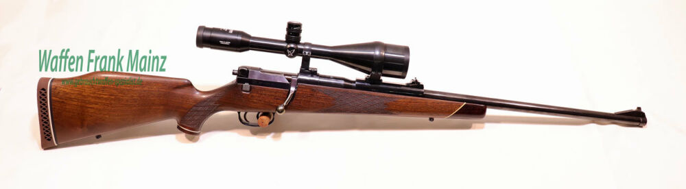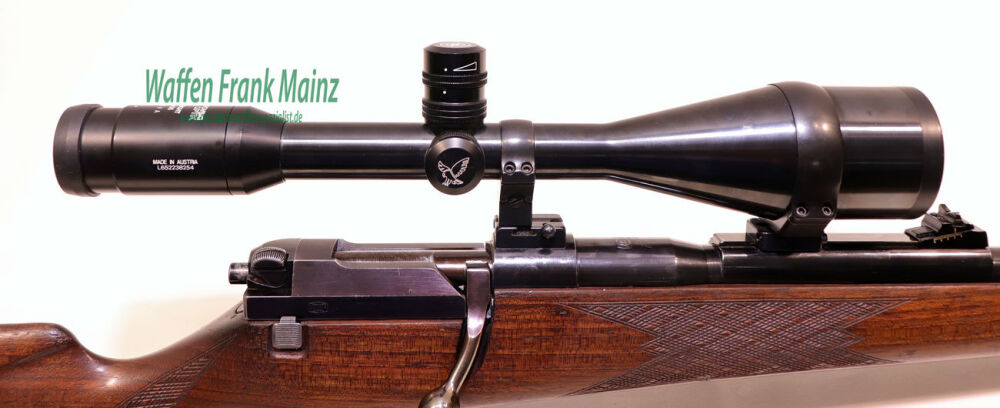 gut gepflegte Schrankwaffe, wurde nur auf dem Ansitz auf Schwarz- und Rotwild mit Erfolg geführt, patentierter Teleskopverschluß als Meilenstein der Waffentechnik, (Waffenlänge wird dadurch 9cm minimiert), mit Erfolg weltweit in allen Kalibern verkauft, mit Schlagstückverriegelung, deutscher Stecher, auch als Direktabzug gut verwendbar, integrierter Magazinschacht mit 3+1 Schuss, mit schwerem konischem Safarilauf, mit 19mm Mündungsdurchmesser (daher gutes Rückstoss- und Schwingungsverhalten), verstellbares Williams Visier, EAW Schwenkmontage mit ZF Habicht Nova 8x56 mit dimmbarem Leuchtabsehen und abnehmbarer Leuchteinheit, Nussbaumschaft mit Edelholzabschluss an Vorderschaft und Pistolengriff, langgezogene deutsche Backe für Rechtsschützen, Schaftlänge mit Gummikappe 385mm.....zuverlässiges und bewährtes Waffensystem für weltweiten Jagdeinsatz und Safari...(Patronenauswahl, auch noch Vollmantel ab Lager)