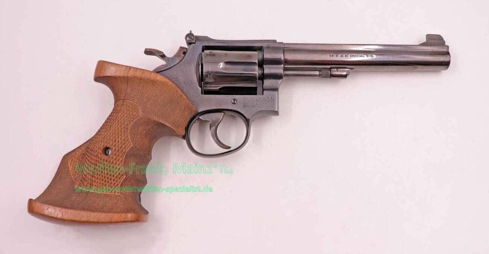selten geschossene Schrankwaffe, noch in höchster Verarbeitungsqualität, mit breitem, bunt gehärtetem Targetabzug und Hahn, Matchvisier, nachträglich mit orthopädischem Griff Gr. L, gefertigt von Willi Hoffmann, als jahrelanger Lieferant der Nationalmannschaften, mit Fischhaut und punsierter Handfläche.....als reiner Matchrevolver entwickelt und gebaut, weltweit erfolgreich....