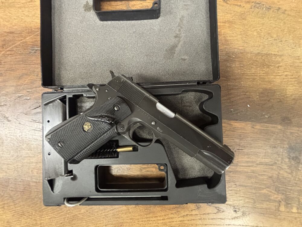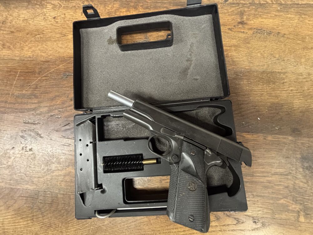Die Norinko Pistole ist Made in China, das Model OF THE 1911 A1 Beschuß KF mit Handballensicherung und Pachmeyer Gummigriffschalen.