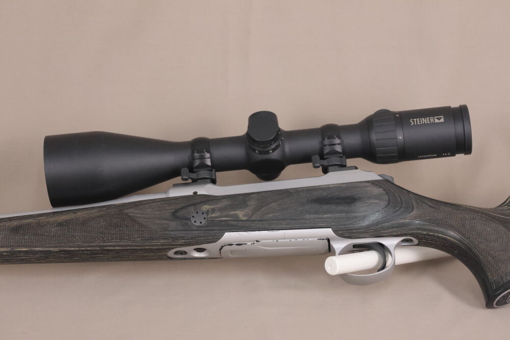 Montiert ist ein modernes, beleuchtetes Zielfernrohr der Marke Steiner, Mod. Ranger 4-16x56, Abs. „60“.