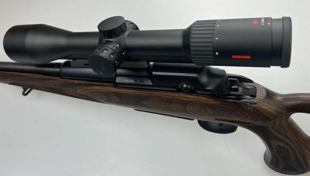 MAUSER 25 Max im Kaliber .30-06, NEU und sofort verfügbar Montiert mit Mauser Montage: MINOX RS-4 2,5-10x50 S Geradezug-Repetierer sehr schneller Repetiervorgang extrem leichtgängig ultra... ...weiterlesen