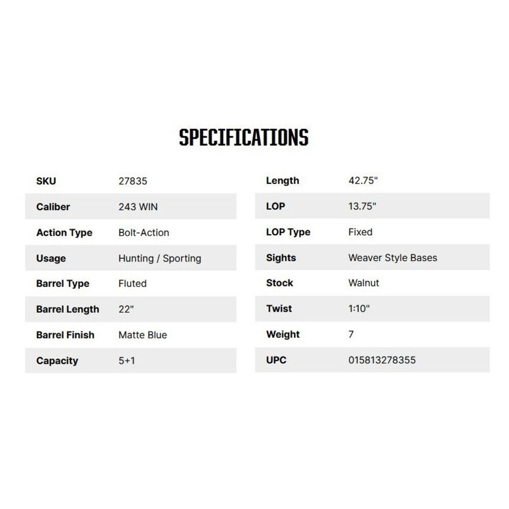 | Hier direkt bestellen → → | Mossberg Patriot Walnut 22" (22 Zoll) .243Win |