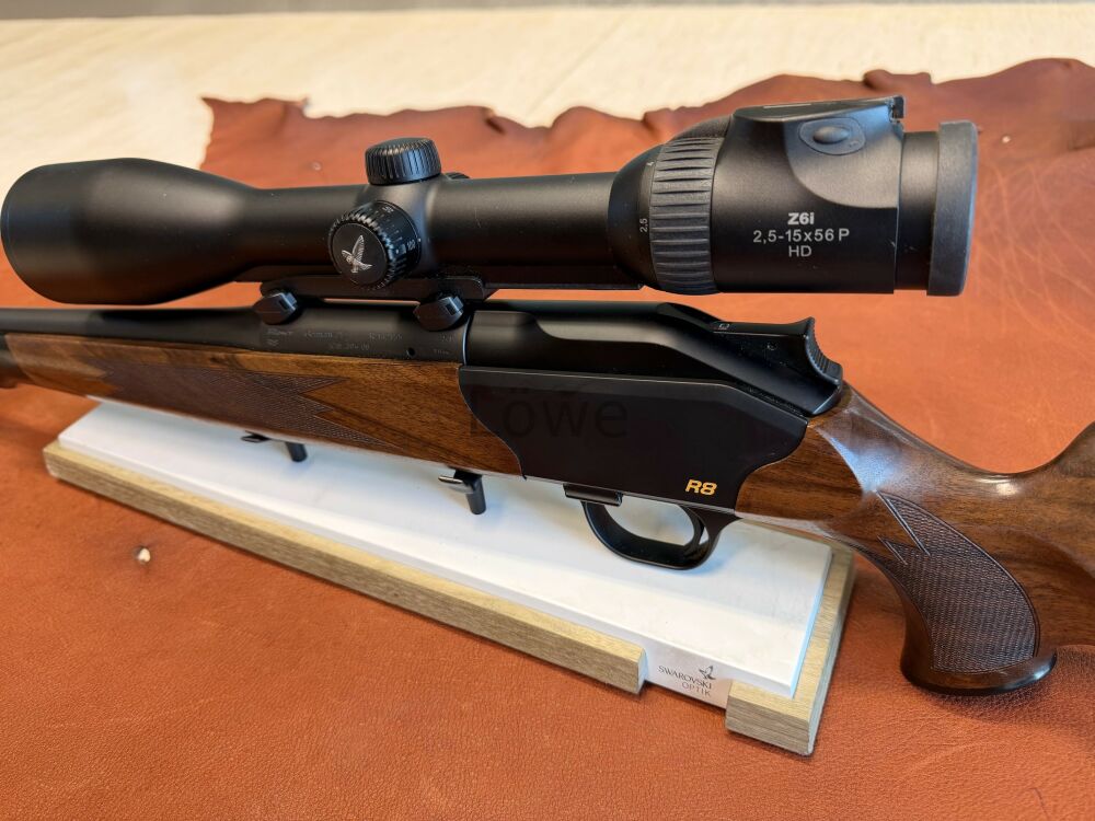 Blaser R8 - Kaliber: 30-06 - Schaftlänge: 36,5cm - Lauflänge: 58cm - Gesamtlänge: 102cm - Mündungsgewinde M15x1 - Blaser Sattelmontage SR - montiert ist ein Swarovski Z6i 2,5-15x56 SR A... ...weiterlesen