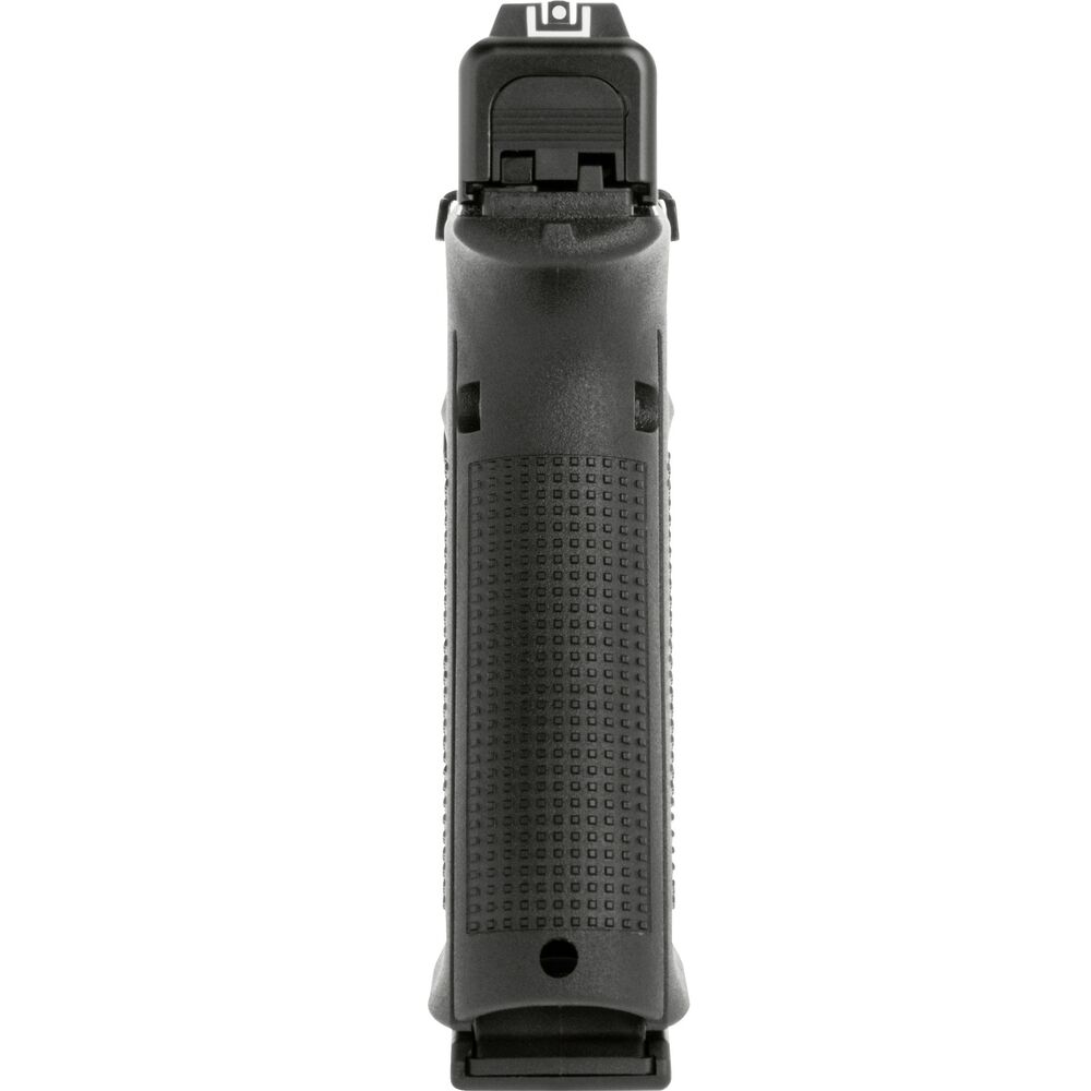Das Griffstück der Glock 47 MOS ist ohne Fingerrillen gestaltet, was einen komfortablen Halt für alle Fingergrößen ermöglicht. Die verlängerte Magazinbodenplatte sorgt für schnelles und effizientes Nachladen, selbst in Stresssituationen. Der ausgestellte Magazinschacht erleichtert das Einführen des Magazins, das eine Kapazität von 17 Patronen bietet.