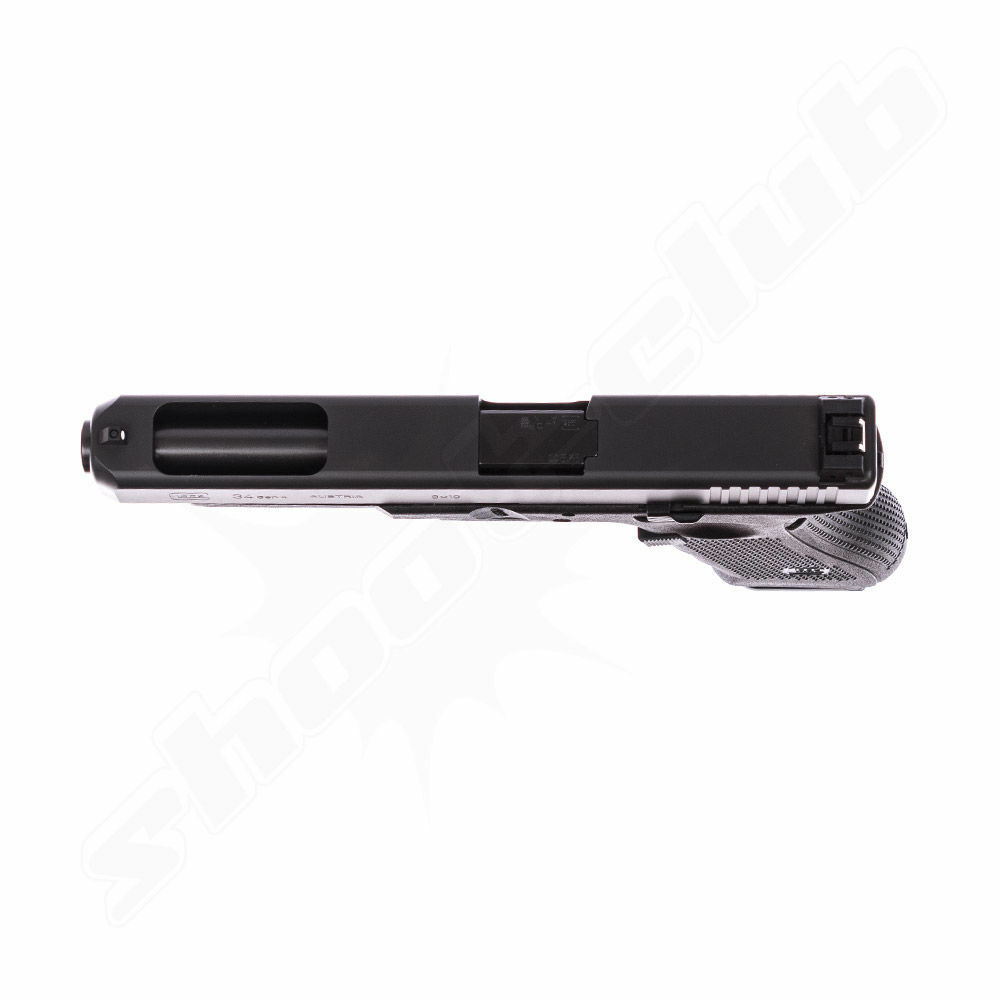 Die Glock 34 im Kaliber 9 x 19 mm ist eine hochmoderne und äußerst präzise Sportpistole mit Wettkampfqualitäten. Größtes Augenmerk wurde von den Entwicklern bei dieser Pistole auf Präzision und ein leichtes Handling gelegt. Mit einer erhöhten Verschlussmasse, einem verlängerten Lauf und einer langen Visierlinie ist die Glock 34 für den IPSC Wettkampfeinsatz bestens geeignet. Zusätzlich ist das Modell 34 in der Gen. 4 Ausführung auch für ein MOS (Modular Optic System) ausgerüstet, was ein nachträgliches Nachrüsten mit einem Leuchtpunktvisier ermöglicht.