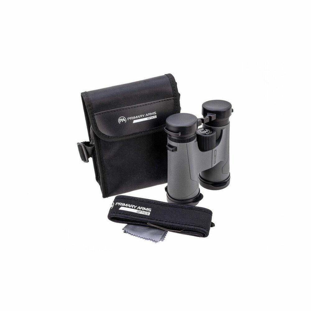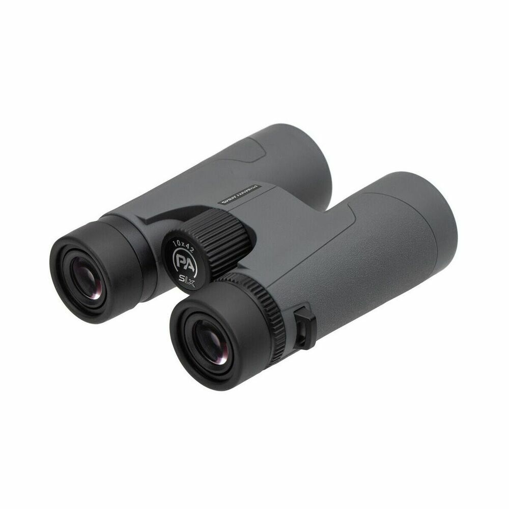 SLx Fernglas mit 10x42 Vergrößerung, Gewicht 20.7oz / 587gramm, Farbe grau, Leichtgewicht mit robuster Konstruktion und überragender Klarheit, Vollständig mehrfach beschichtetes Präzisionsobjektiv, Zentrumsfokus für einfachen Zugriff, Rutschfester, blendfreier Gummi als Stoßschutz für einfache Handhabung, Tragetasche und Umhängeriemen zum Schutz unterwegs,100% Wasserdicht, Stoßfest und Beschlagfrei, Code SKU: PA-SLX-10X42-B - MPN: 510016 Primary Arms USA. Neu 2023!