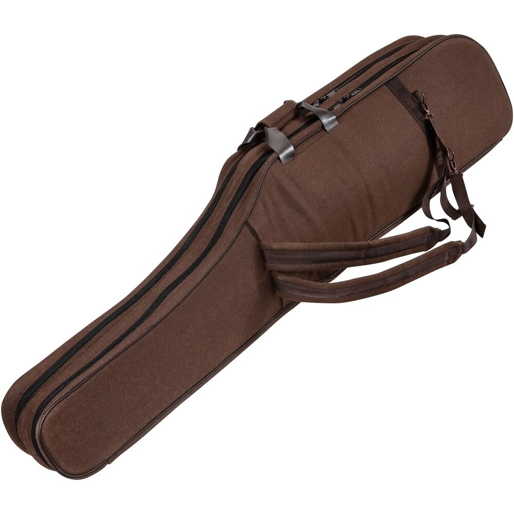 Das braune Loden mit weicher Schaumstoffpolsterung sorgt für eine stoßfeste Beschaffenheit, welche Ihre Waffe und Optik zusätzlich vor Kratzern schützt. Der Boden ist verstärkt, damit ein "Aufscheuern" durch den Lauf verhindert wird (die Verstärkung kann bei Bedarf auch entnommen werden). Beide Fächer besitzen jeweils einen Doppelreißverschluss, wodurch das Futteral mittels Vorhängeschlösser (nicht inklusive) abschließbar ist. In der großen Reißverschluss-Außentasche (Maße 39x20x4 cm) kann zudem Ausrüstung, Munition etc. transportiert werden.