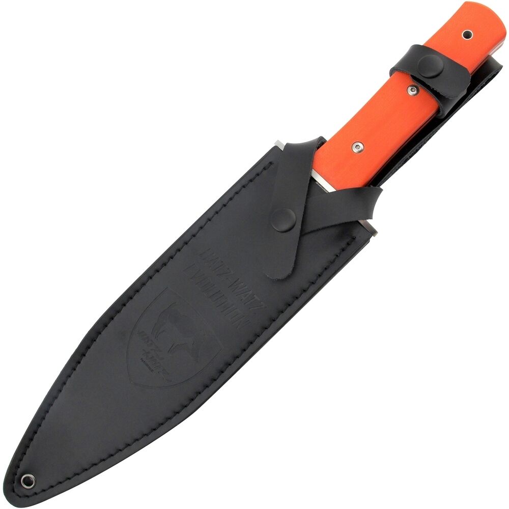 Das signalorangene Griffstück aus G10 lässt das Messer jederzeit leicht wieder auffinden und ist mit einer Fangriemenöse ausgestattet. Gesichert wird es mit zwei festen Nieten. Der glasfaserverstärkte Kunststoff G10 ist besonders robust und sehr leicht zu reinigen.