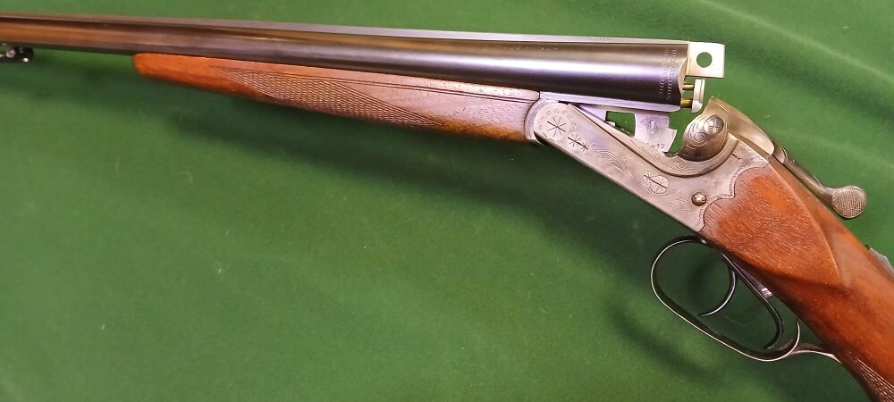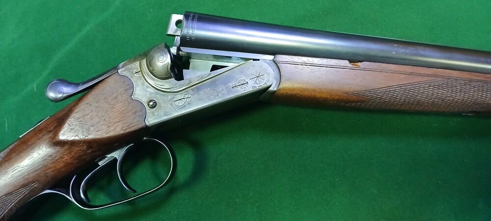 Leicht und führig, aus bekanntem Hause und in guter Qualität 71cm Läufe, Schaftlänge 36,5cm, automatische Sicherung, Signalstifte für die Schloss-Spannung, die Gummi-Schaftkappe ist hinten beledert u... ...weiterlesen