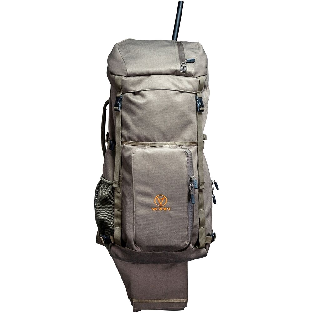Ausgestattet ist der Jagdrucksack mit einem Außen- und Innenrahmen, der für optimale Stabilität und Tragekapazität sorgt. Darüber hinaus verfügt der EV45 nicht nur über einen gepolsterten Hüftgurt mit MOLLE-Befestigungspunkten, sondern auch über komfortable Schultergurte mit VORN-Pin-Lock-System zur Höheneinstellung. Zusätzliche Handgriffe, Kompressionsriemen und Befestigungspunkte ermöglichen eine einfache Handhabung.