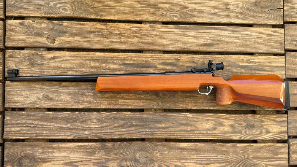 Der Haenel 900 Standard ist ein klassischer Kleinkaliber-Einzellader im Kaliber .22 l.r. (5,6 mm), der sich besonders für Sportschützen, Trainingszwecke und das präzise Scheibenschießen eignet. Das Gewehr verbindet die robuste Bauweise traditioneller DDR-Sportwaffen mit einer sehr guten Schussleistung und einfacher Handhabung.
