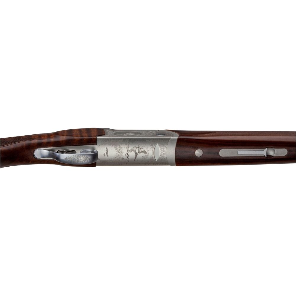 Die Mercury Bockdoppelflinten zeichnen sich durch eine einfache und führige Handhabung aus und haben sich in der vielseitigen jagdlichen Praxis seit vielen Jahren bestens bewährt. Die Modellreihe ist in den universellen Kalibern 12/76 oder 20/76 erhältlich mit denen man auch 70er Patronen verschießen kann. Die Flinten verfügen ferner über einen Stahlschrotbeschuss und ein geringes Gewicht von ca. 2,75 kg und sind somit auch für Damen hervorragend geeignet. Die Holzschäfte aus Nussbaum verfügen über eine Länge von rund 37 cm. Das System verfügt über ein Blitzschloss, die Sicherung ist mit Schieber auf dem Kolbenhals angebracht. Der Einabzug mit Umschaltung erlaubt ein schnelles Reagieren auf sich ändernde Jagdsituationen.