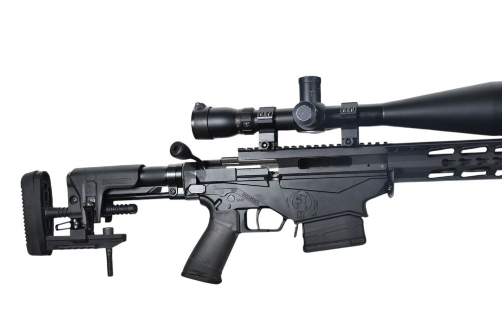 Diese Ruger Precision Repetierbüchse im Kaliber 6.5 Creedmoor hat eine Gesamtlänge von 115 cm, eine Lauflänge von 68 cm sowie eine Schaftlänge von 34 cm. Die Waffe ist mit einem Zielfernrohr 10-50x60 ... ...weiterlesen