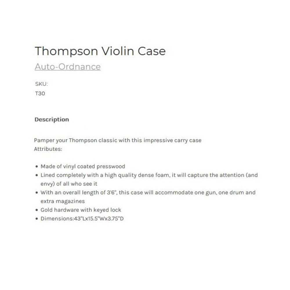 Hier direkt bestellen → →Auto-Ordnance Violinenkoffer T30 Tommy GunWaffenherstellerAuto-OrdnanceFabrikatTommy GunTommy Gun Rifle, Violinenkoffer Rifle schwarz, Länge 43"/109,2cm, Breite 15,5"... ...weiterlesen