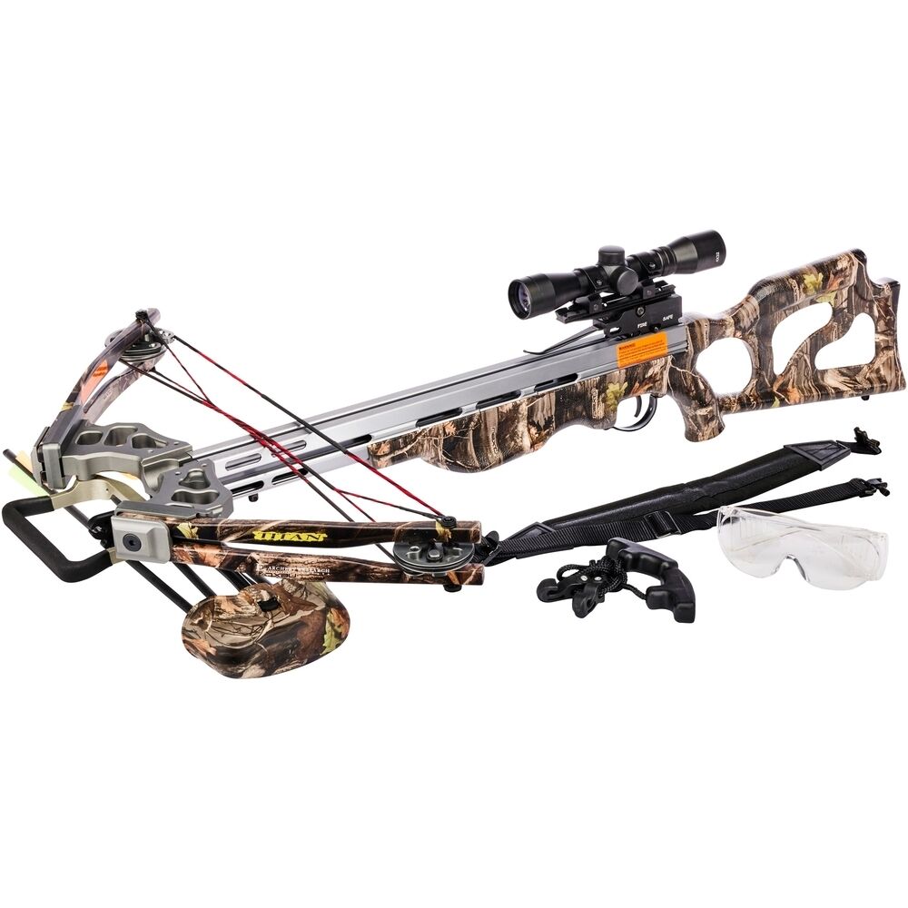 Ausgestattet ist die Armbrust mit einer Weaver Montageschiene. Die Titan Armbrust wird mit 20? Carbonpfeilen, ausgestattet mit 100 Grain-Spitzen ausgeliefert. Diese Pfeile sind hervorragend für das Scheibenschießen geeignet.