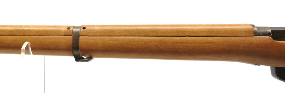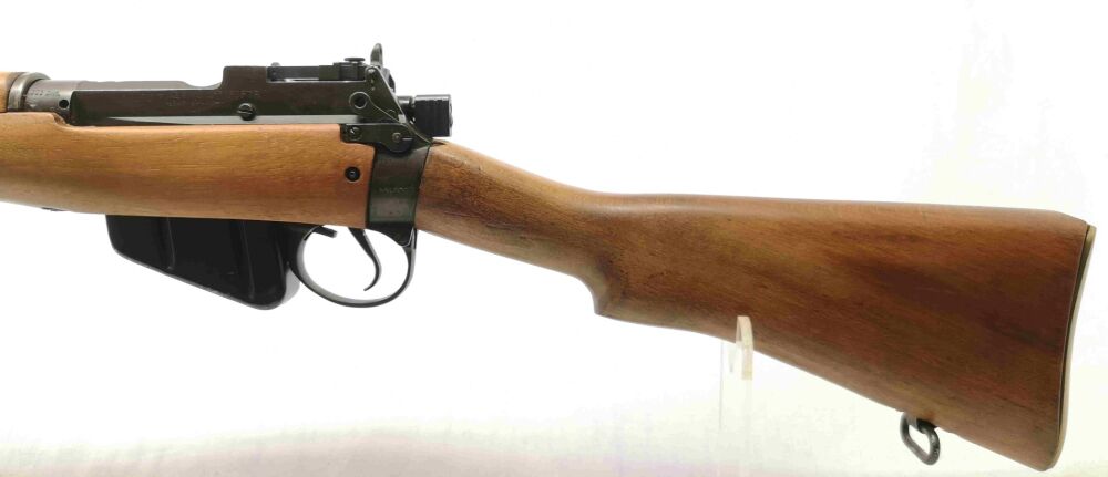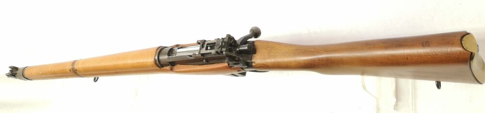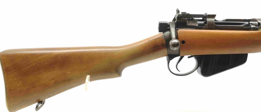 N4010 Enfield - No. 4 MK I Longbranch - Note 2 - schöner, gut erhaltener Enfield, Modell No. 4 MK I Long Branch mit Spindeldiopter und Korn mit seitlichem Kornschutz, Steckmagazin, technisch in Ordnung, Schaft und Metall im gutem gepflegten Zustand (Note 2), Baujahr 1946, Neubeschuß in Mellrichstadt, Messingschaftkappe mit Aufbewahrungsfach für originales Putzzeug (nicht dabei), vordere Schafthülse leicht berieben *** EWB-pflichtig ***
