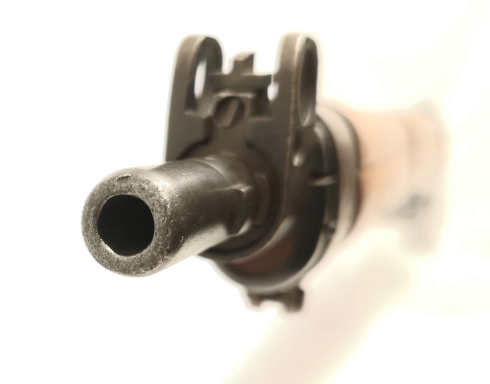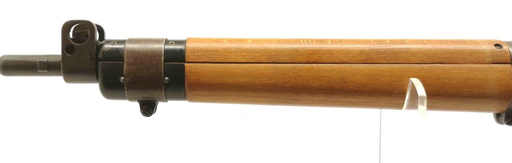 Besonderheit: schöner, gut erhaltener Enfield, Modell No. 4 MK I Long Branch mit Spindeldiopter und Korn mit seitlichem Kornschutz, Steckmagazin, technisch in Ordnung, Schaft und Metall im gutem gepflegten Zustand (Note 2), Baujahr 1946, Neubeschuß in Mellrichstadt, Messingschaftkappe mit Aufbewahrungsfach für originales Putzzeug (nicht dabei), vordere Schafthülse leicht berieben