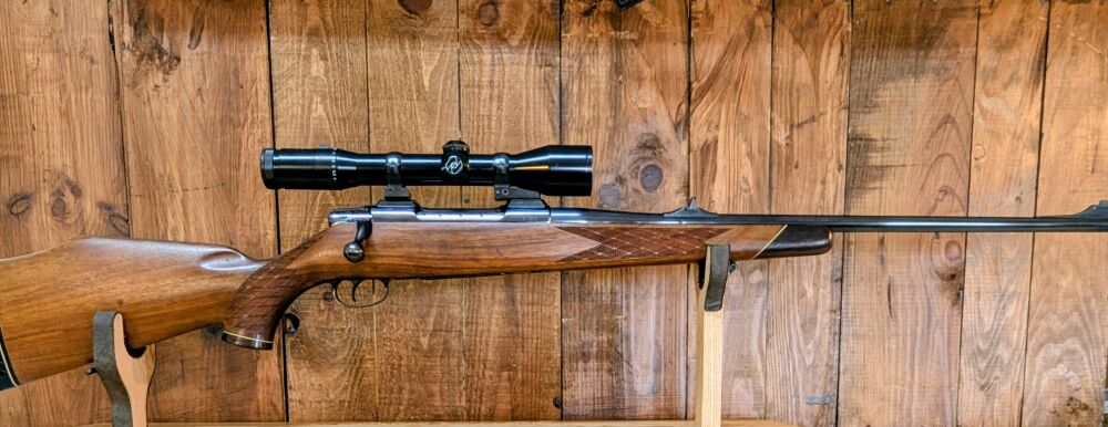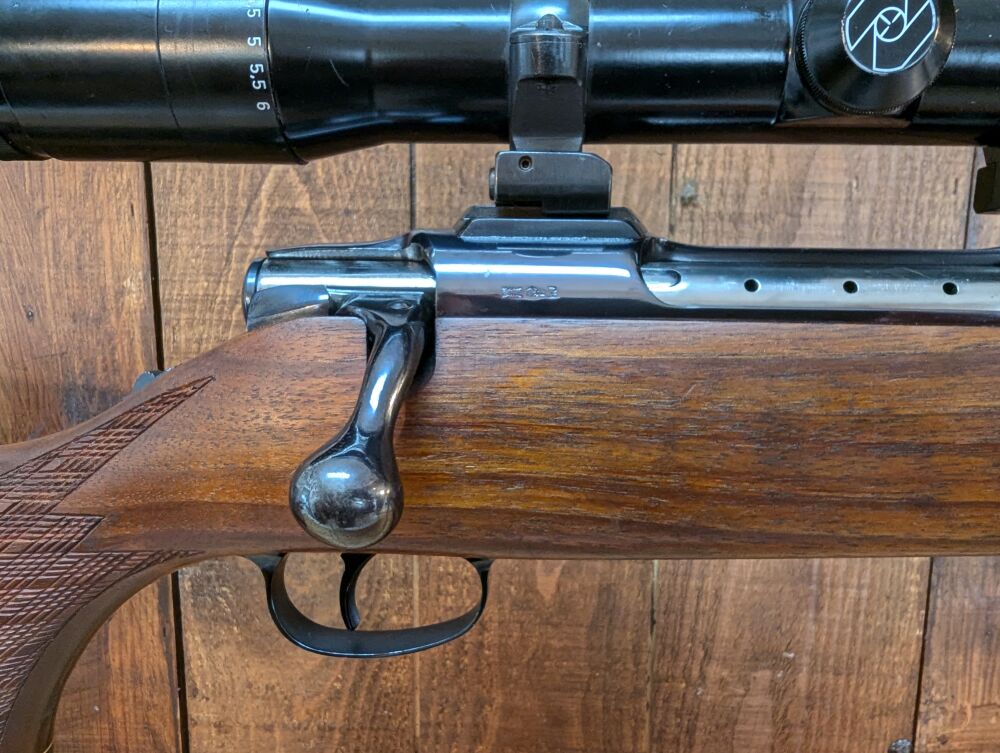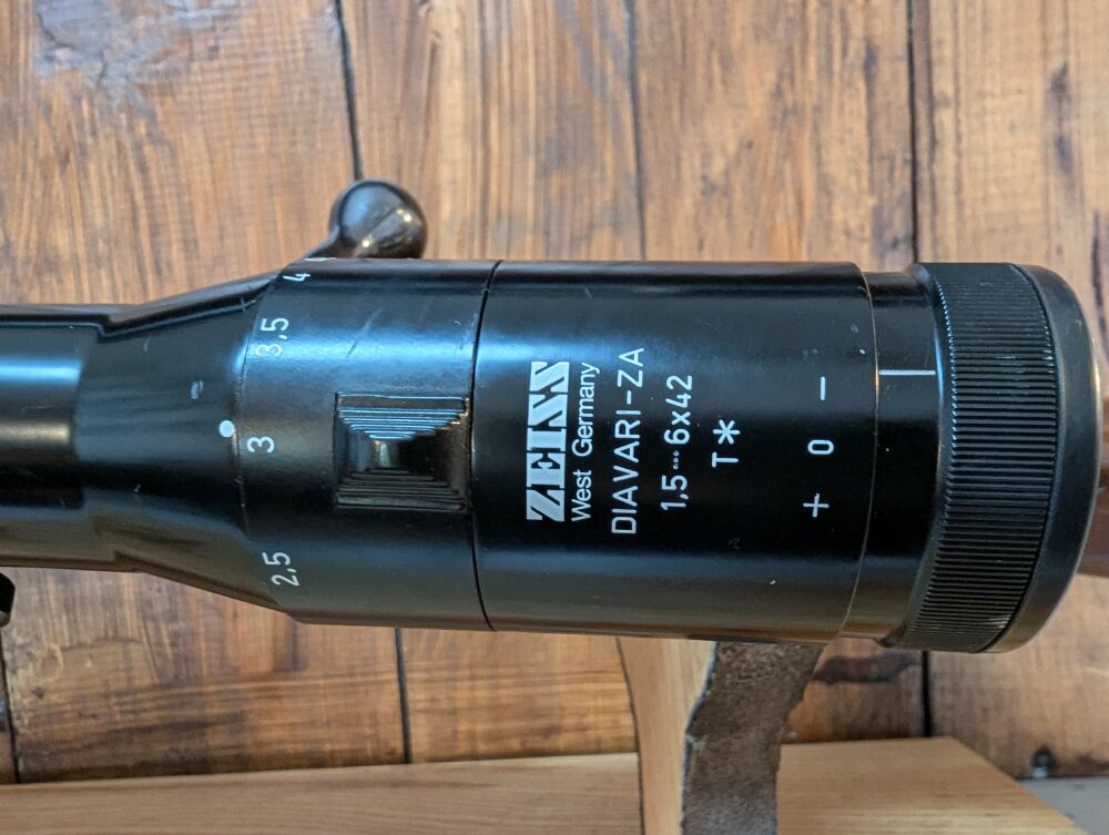 Sauer 80 im Kaliber 7*64 in einem sehr guten Zustand. Keine Schussbelastung erkennbar. Kombi-Abzug, ventilierte Schaftkappe, Einsteckmagazin. Montiert ist mittels einer SCHWENKMONTAGE ein Zeiss Diav... ...weiterlesen