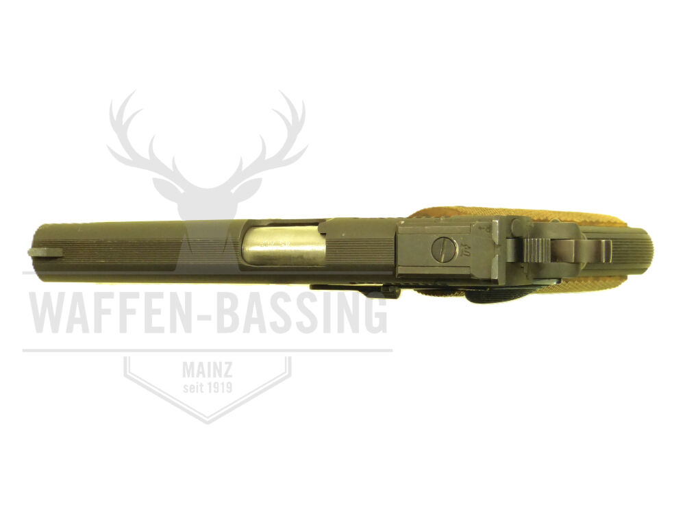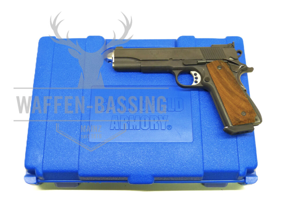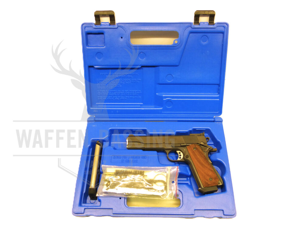 Die Springfield Armory Pistole Trophy Match Kal. .45Auto ist eine Gebrauchtwaffe, die nicht häufig zu finden ist. Die Springfield Armory Trophy Match ist eine brünierte Ganzstahlwaffe und im klassischen 1911er Design gebaut. Die halbautomatische Pistole hat Holzgriffe mit Fischhaut, die für perfekte Griffigkeit sorgen und eine Magazinkapazität von 7+1. Auch hat die Springfield Armory Trophy Match Pistole eine verstellbare Matchvisierung und einen Sportabzug mit Triggerstop. Somit ist die Kurzwaffe für Sportschützen besonders geeignet. Die Kurzwaffe wurde Probe geschossen und auf ihre Funktion geprüft. Geliefert wird die Pistole im originalen blauen Springfield Armory Koffer zusammen mit einem Ersatzmagazin, einem Reinigungs- und Zerlegeset von Wilson Combat sowie dem Bushing-Schlüssel.