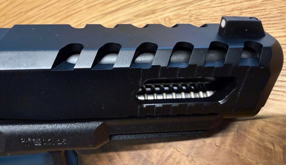 Aufgrund des Designs ohne Fingerrillen ist das Griffstück für alle Fingergrößen passend und bietet komfortablen Halt. Außerdem ermöglicht eine verlängerte Magazinbodenplatte das schnelle und effiziente Nachladen in Stresssituationen. Die größere Öffnung des ausgestellten Magazinschachts erleichtert hierbei das Einführen des Magazins, welches über eine Kapazität von 17 Patronen verfügt.