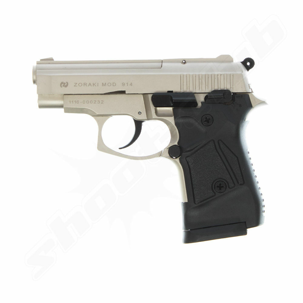 Zoraki 914-P Schreckschusspistole Kaliber 9mm P.A.Knall satina im Platzpatronen-Set mit Ersatzmagazin