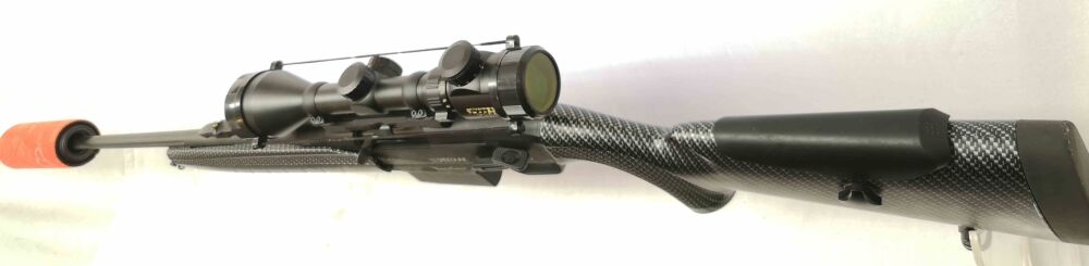 Besonderheit: tolles Komplettset von Verney-Carron (Frankreich), Modell Speedline Karbon, Kal. .30-06Spr., mit ERA -Schalldämpfer SOB3D und ZF SUTTER 3-12x50e (m. Leuchtpunkt), sowie Dentler Basis, patentiertes Stop&Go-System, verstellbarer Wangenauflage, 6 Bolzen Verriegelung, 2 Magazine (3 und 5 Schuss), Zubehör, tolles Komplettset für die Jagd im beliebten Kal. .30-06Spr., NP aller Teile rund 3.650,00 EUR, Waffe technisch einwandfrei, optisch bis auf einen kleinen minimalen Kratzer am Hinterschaft (sieht man durch Karbonoptik fast nicht) ebenfalls sehr gut *** 2 Einträge werden gemacht (Waffe + Schalldämpfer) ***