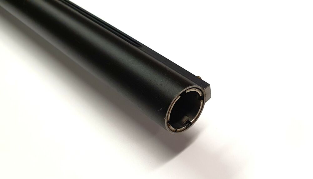 Lauflänge: 71cm , Wechselchoke, Leichtmetallgehäuse, Druckknopfsicherung im Abzugsbügel, gebraucht, sehr guter Erhaltungszustand.