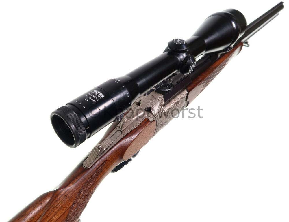 Gebrauchte Bockbüchsflinte Zeiss 2,5-10x52 Abs. 1Blaser SchwenkmontageLauflänge 60cmK&S Einstecklauf fast Mündungslang 6,5x57RBaujahr 1991Einschloss Handspannung Feinabzüge (einstellbar) Sch... ...weiterlesen