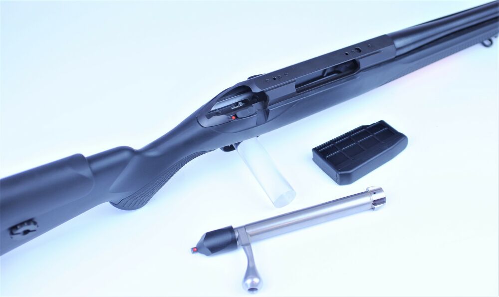 Durch den leichten Polymerschaft mit verstellbarem Schaftrücken, den Flintenabzug und das Mündungsgewinde