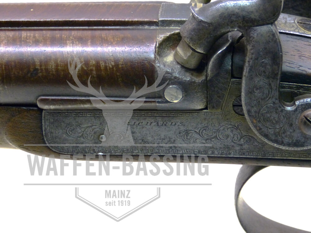 Richards Ltd. Burmingham, Perkussionsflinte, Kaliber 16 , Gebrauchtwaffe Diese Doppelflinte der Firma Richards Ltd. aus Burmingham (England) ist ein absolutes Sammlerstück. Die Querflinte mit Läufe... ...weiterlesen