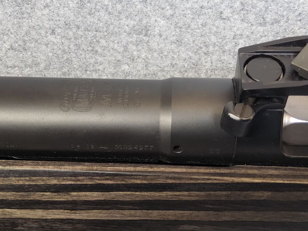 Der seitlich ausgestellte ,steile Pistolengriff ermöglicht eine sehr ergonomische Handhaltung ,hiemit ist eine sehr gute Abzugskontrolle möglich. Waffe technisch einwandfrei Lauf innen spiegelblank mit sehr guten Feld-Zugprofil.