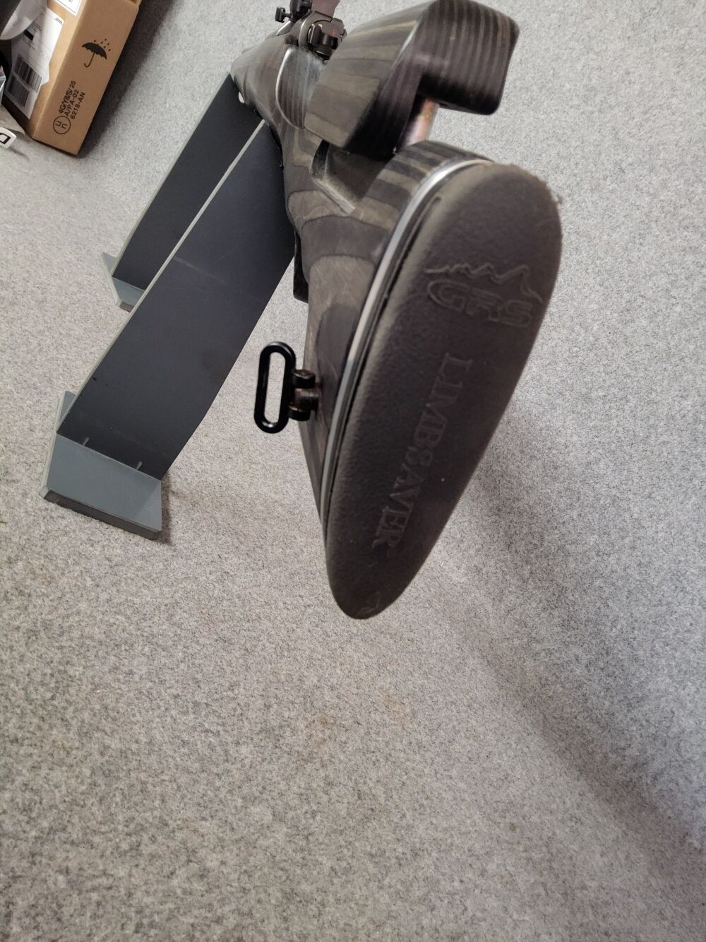 Waffe mit Handspannung und ergonomischen GRS Schaft. ebenso ist der orginale Nußbaumschaft dabei.