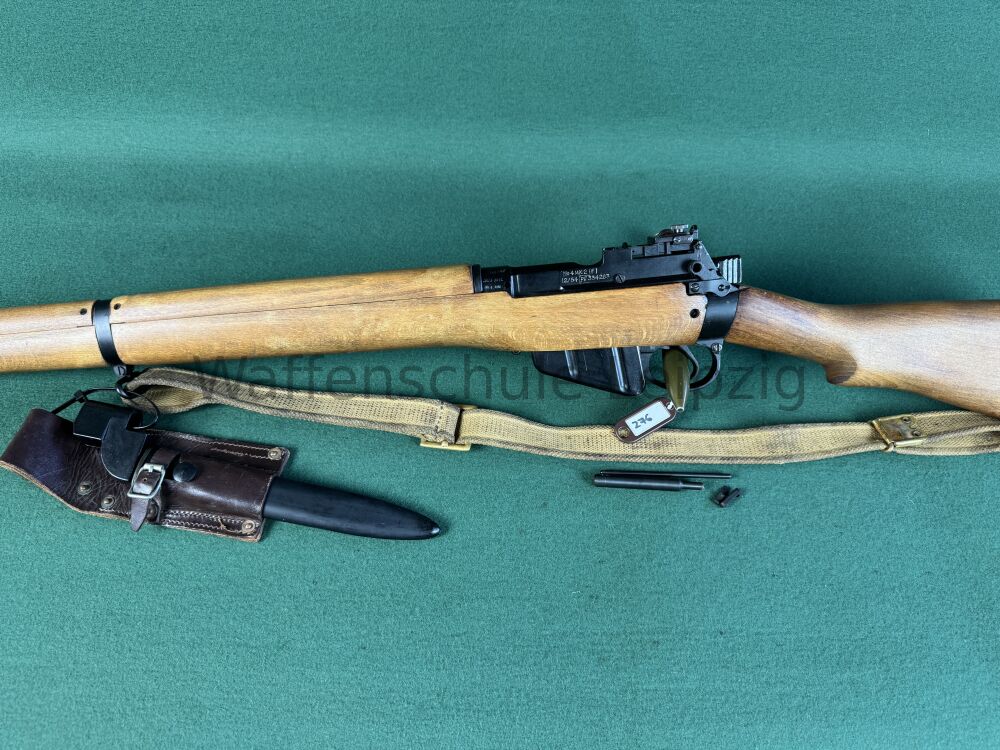 Repetierbüchse Kal. .303 Brit., Lee Enfield No. 4 MK 2, mit Bajonett, Diopter, Riemen, Lauf ist wie neuwertig
