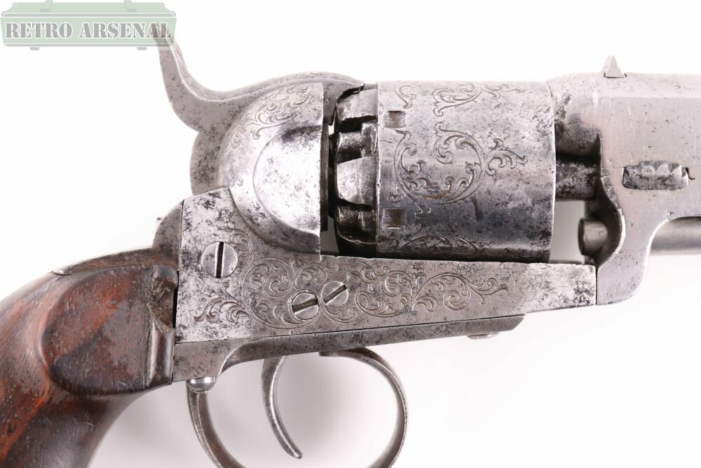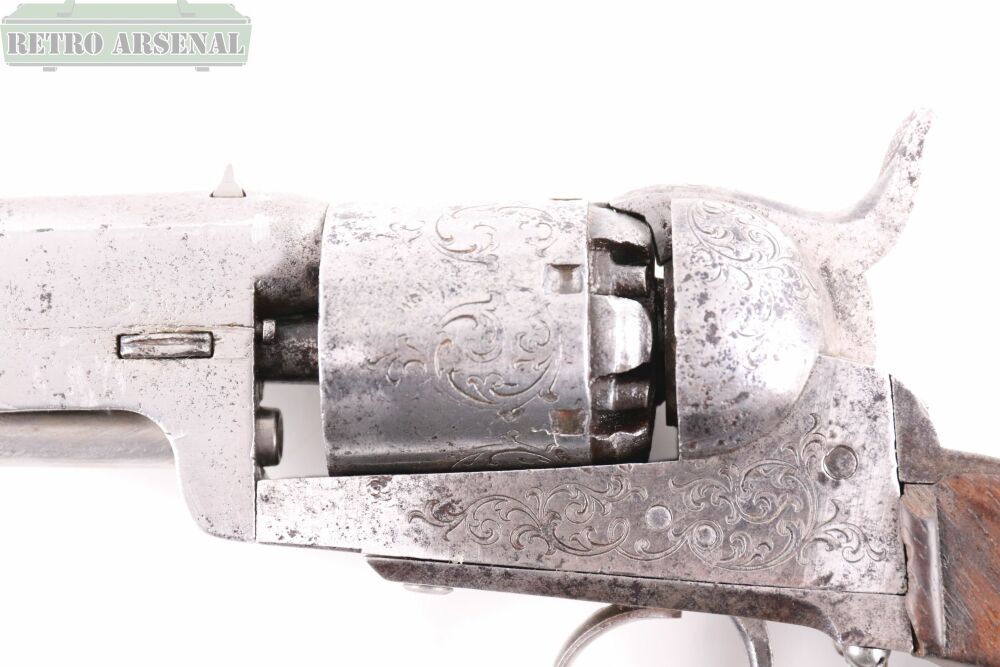 E.Sick aus Günzburg Perkussionsrevolver Kaliber .31BP Seriennummer 03 Lauflänge 16cm Magazinkapazität 6 Schuss Kein gültiger Beschuss, da BJ vor 1891 Laufzustand rauh Felder und Züge ... ...weiterlesen