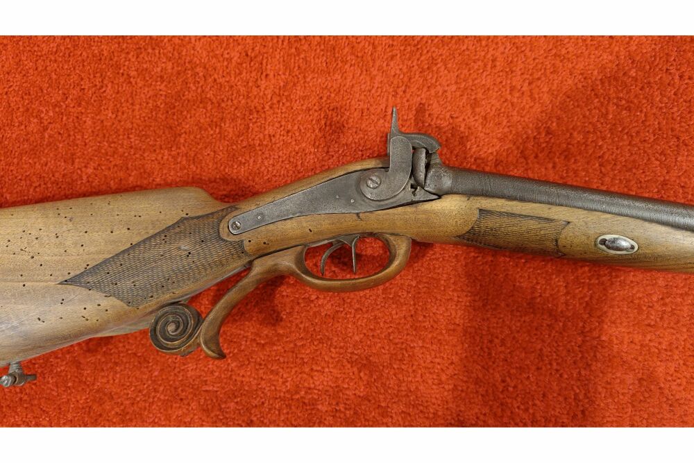 Unbekannt  .28(BlackPowder)+ Lauflänge 77cm+ Lauf innen dem Alter entsprechend+ Nussbaumschaft mit Backe ( Gebrauchsspuren vorhanden ) ( Wurmstichig )+ Doppelabzug+ Original Ladestock vorhanden ...weiterlesen