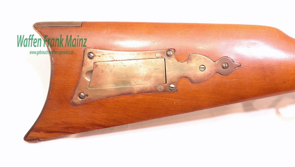 mit gültigem italienischem Beschuss, selten geschossen, 22mm Achtkant-Lauf im Außenbereich leicht fleckig, durchgehender Vorderschaft, Beschlagteile in Messing, Holz mit leichten Kratzern.....ein Stück zum Sammeln und Schießen...