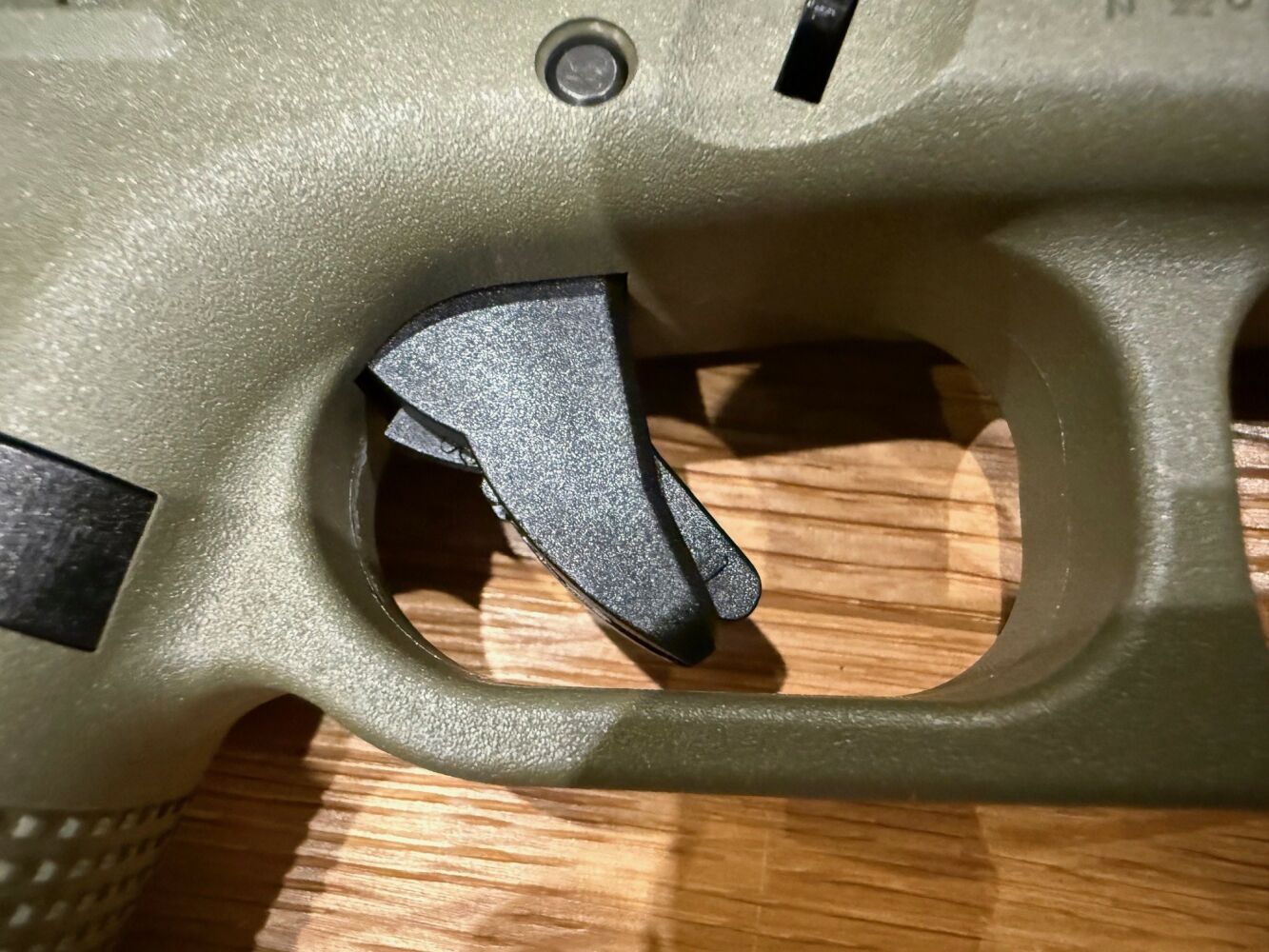 GLOCK Performance Trigger: klare, gerade Abzugsfläche, knackiger Druckpunkt, reduziertes Auslösegewicht — spürbar bessere Schusskontrolle ohne komplizierte Einstellprozeduren.