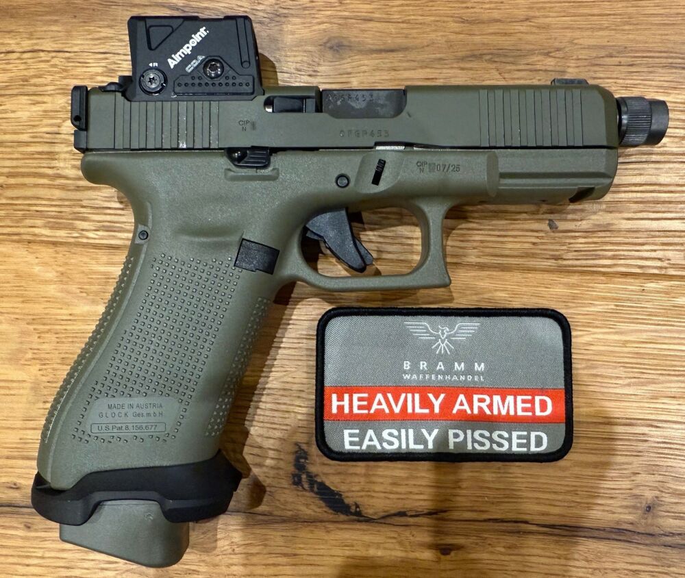 Limitiertes Sondermodell mit olivgrünem Griffstück und Verschluss — dezentes, taktisches Finish
