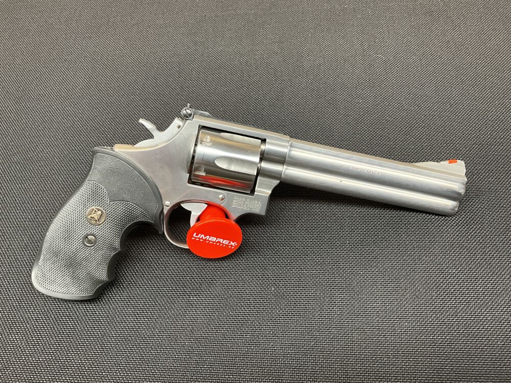 Gebrauchtwaffe, professionell gereinigt und vom Büchsenmacher überprüft! 6 Zoll-Lauf; 6 Schuss-Trommel