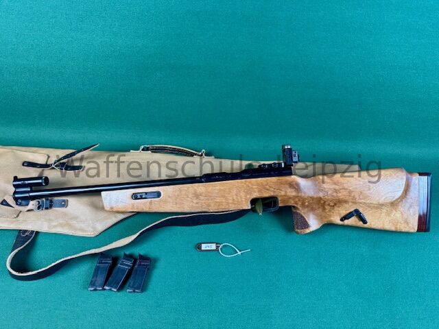 Geradezugrepetierer Kal. .22 lfB, Baikal Biathlon 7-2, Gesamtlänge 100 cm, 7 Ersatzmagazine, Dioptervisierung, Holzschaft, kaltgehämmerter Lauf, orig. Ledertasche, Zustand ist recht gut mit minimalen ... ...weiterlesen