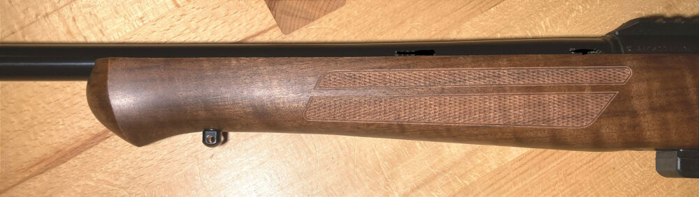 Gefertigt aus dem Nussbaumholz uralter Wälder, optisch und funktional veredelt durch griffige „Fischhaut“. Hart und verformungsstabil, natürlich und individuell. Kein Schaft gleicht dem anderen. Die Gummischaftkappe dämpft den Rückstoß und hält das Gewehr im Anschlag sicher in der Schulter.