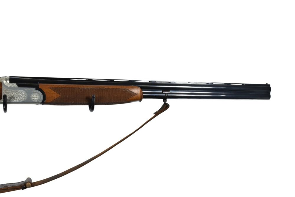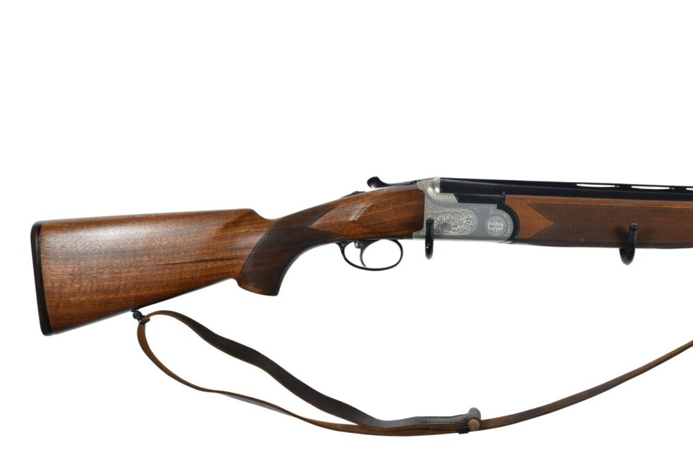 Diese Rottweil Supreme Flinte im Kaliber 12/70 hat eine Gesamtlänge von 116 cm, eine Lauflänge von 71 cm und eine Schaftlänge von 36,5 cm. Die Flinte ist mit 1/4 und 3/4 Choke Würgebohrung ausgestattet. Der Zustand ist mit 2+ angegeben. Das bedeutet sehr leichte Gebrauchsspuren oder eine sehr leichte Schussbelastung. Diese Zustandseinschätzung gilt jedoch nur als generelle Einschätzung, daher muss nicht jede Gebrauchsspur oder jeder Schaden genau in dieser Form vorhanden sein. Mit dabei ist ein Riemen.