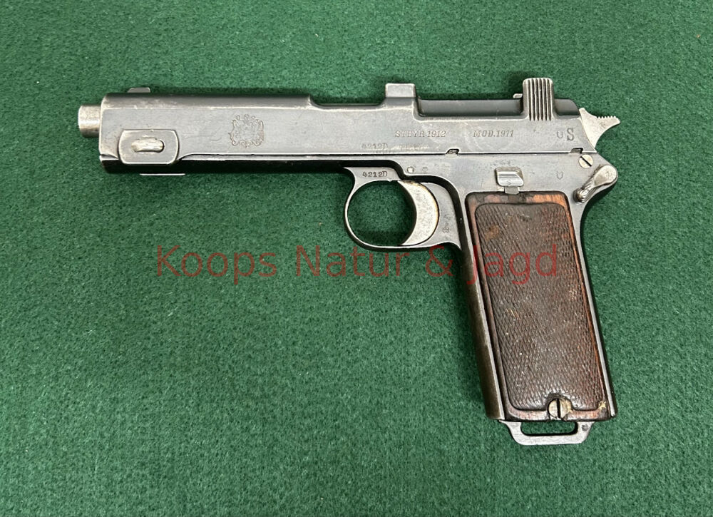Pistole der Fa. Steyr 1912 Model 1911 Ejercito de Chile Kaliber 9 mm Steyr Seriennummer 4212D Verschluss und Griffstück Nummerngleich Fest verbautes Magazin, wird mit einem Ladestreifen gelad... ...weiterlesen