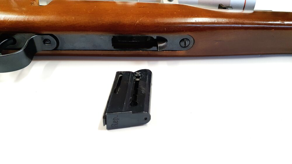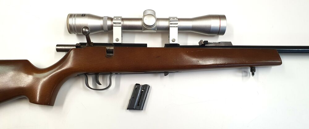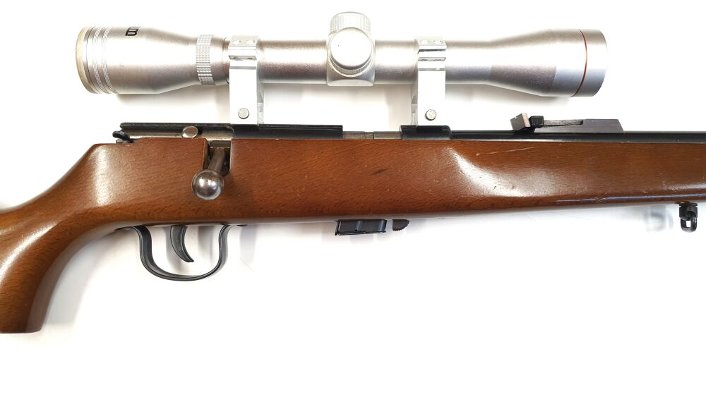 Gebrauchtwaffe: Repetier Gewehr Voere im Kaliber 22L.r. Zusätzlich verfügt die Waffe über ein Wetekom 4x32 Zielfernrohr. Die Waffe ist einem sehr gutem Zustand bis auf wenige Gebrauchsspuren.... ...weiterlesen